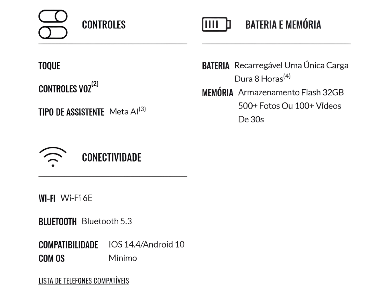 Curta músicas, podcasts e chamadas com áudio open-ear, que oferece uma experiência imersiva sem isolar o som do ambiente. Controle tudo com comandos de voz ou com um toque no touchpad lateral para atender ligações, tirar fotos ou ajustar o volume com praticidade.
