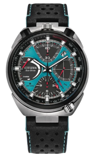 O Promaster Tsuno Chrono Racer de Edição Limitada é a mais recente adição à nossa Coleção Promaster Land. Apresenta um design marcante inspirado na herança automobilística da Citizen. O cronógrafo distinto ostenta um mostrador azul claro exclusivo com detalhes em vermelho em uma caixa de aço inoxidável prateada. Seu mecanismo é montado. Este relógio Promaster apresenta funções avançadas atualizadas para refletir uma estética de corrida, incluindo um indicador de reserva de energia que lembra um medidor de combustível e um mostrador de cronógrafo de 60 minutos projetado para se parecer com um velocímetro. A pulseira de couro preto perfurado enfatiza ainda mais a herança de corrida da Citizen. Outras características incluem um taquímetro, um alarme e um cristal de safira plano. Como outros relógios da linha Promaster, ele é resistente à água até 200 metros e alimentado de forma sustentável pela nossa tecnologia Eco-Drive, que nunca precisa de troca de bateria. Este relógio de colecionador vem em uma caixa exclusiva Promaster Special Edition. Calibre E210.