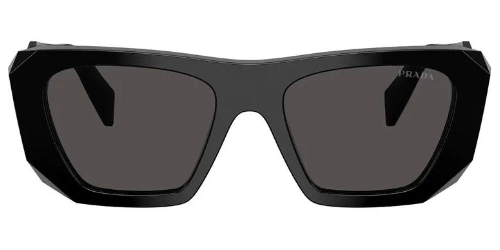Óculos de sol feminino Prada SPR B18 16K-08Z 53 com armação em acetato preto e lentes cinza escuro, oferecendo proteção UV eficaz e um design sofisticado e atemporal. Perfeito para quem busca um acessório de moda premium que combina estilo italiano e conforto diário.