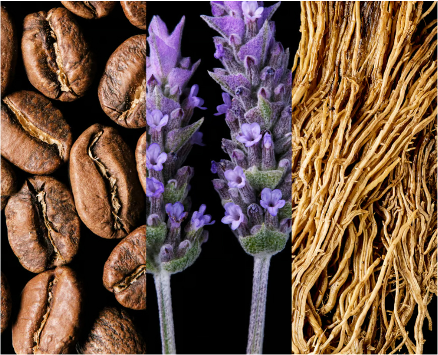 abrindo caminho para uma base almiscarada, com vetiver haitiano de origem sustentável,