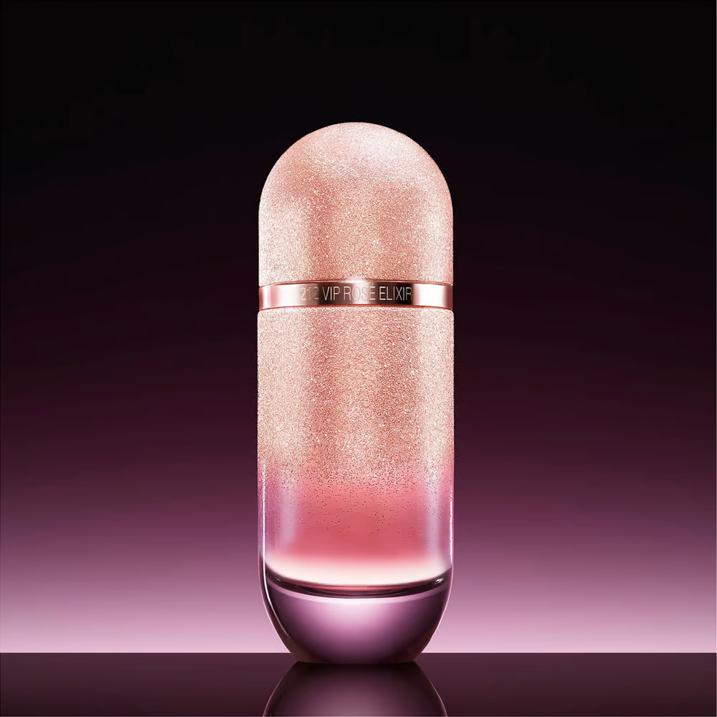O frasco de 212 VIP ROSÉ ELIXIR é um convite deslumbrante para se expressar livremente. Um frasco