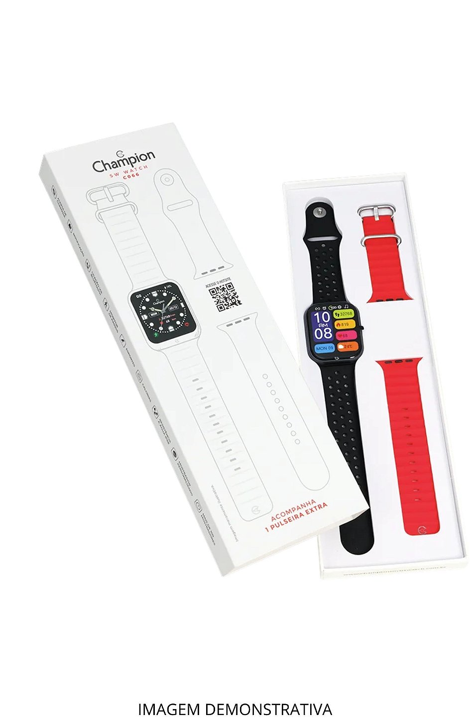 Champion C066 é um relógio inteligente que combina performance, saúde e estilo. Possui tela TFT HD All Touch, navegação fluida e é compatível com Android e iOS, permitindo receber notificações no pulso. Oferece monitoramento completo da saúde (frequência cardíaca, pressão arterial, oxigênio no sangue, sono, calorias, passos e ciclo menstrual) e funções úteis como cronômetro, controle de música, previsão do tempo e assistente de voz. Com resistência à água IP68, bateria duradoura e mais de 100 mostradores personalizáveis, o Champion C066 se adapta ao uso diário e às atividades físicas com estilo e funcionalidade.